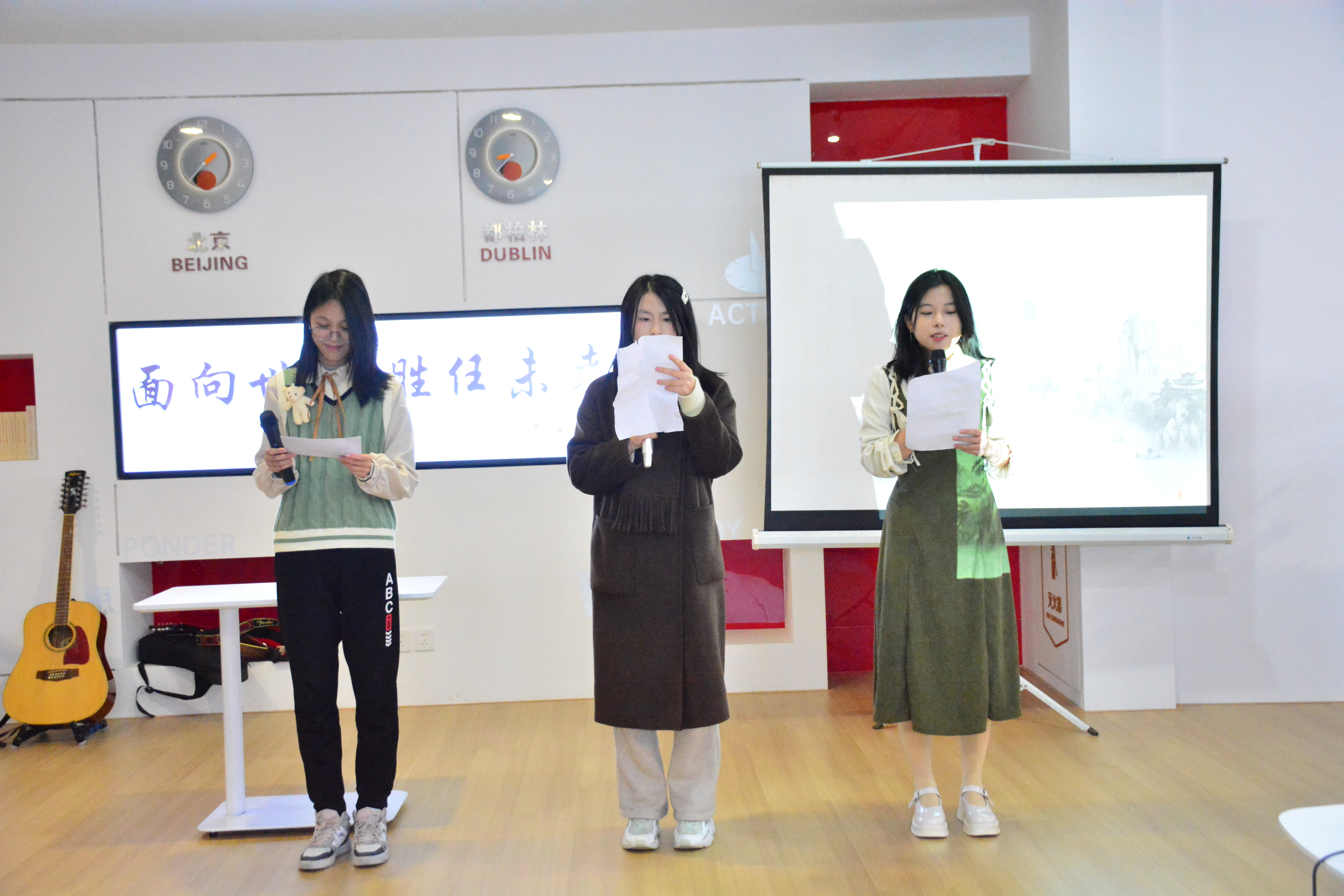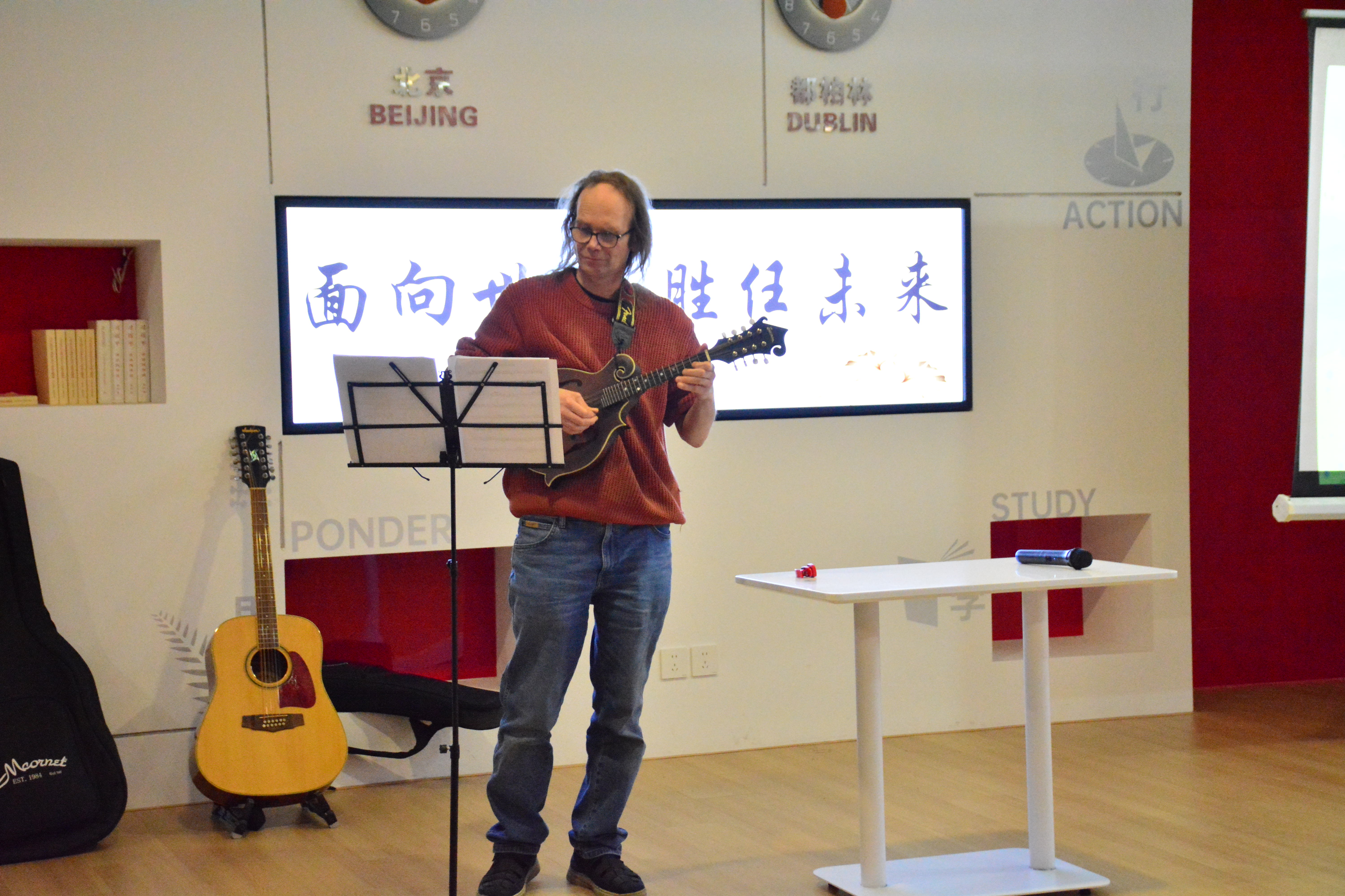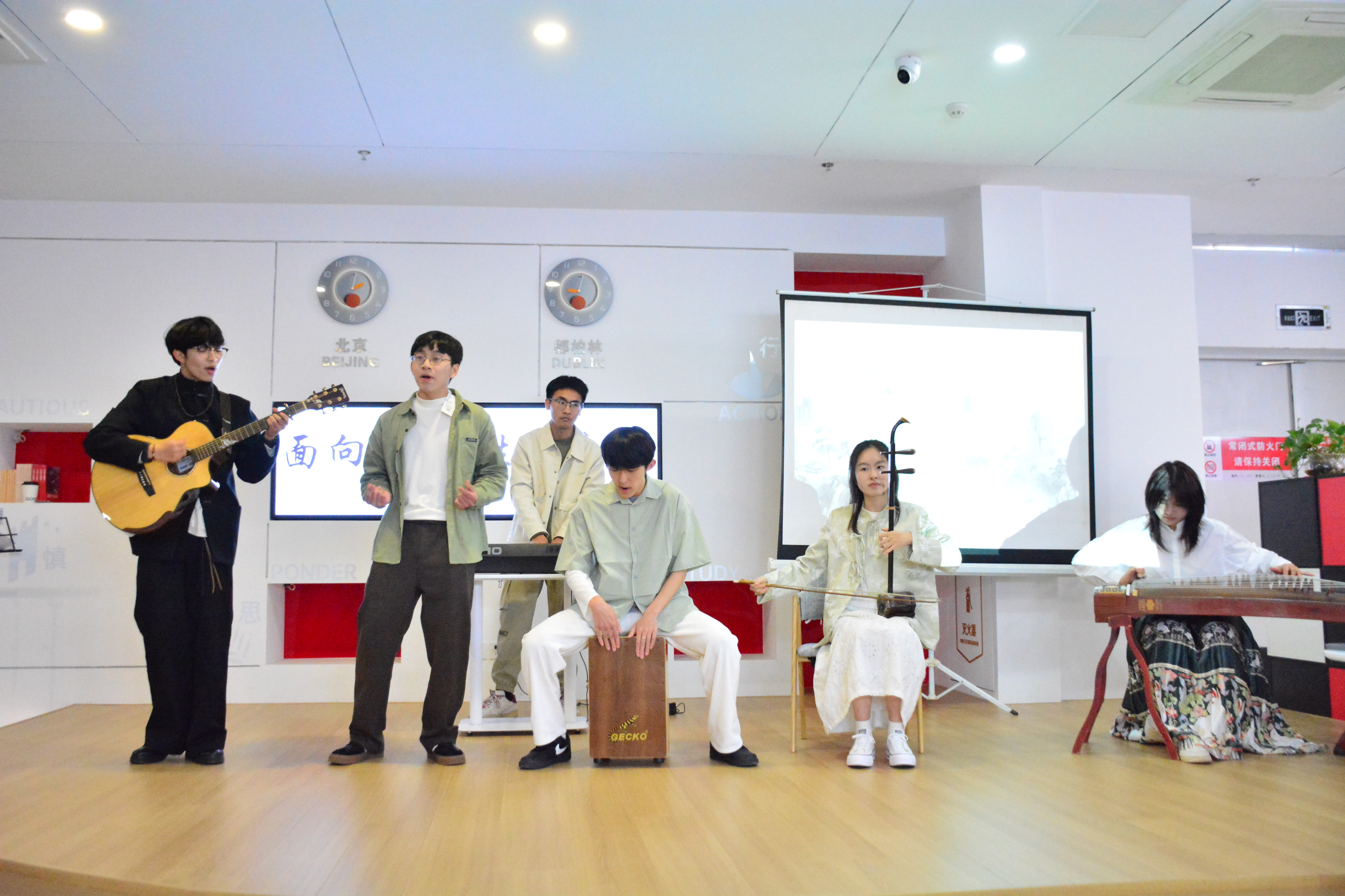 主舞台区,中爱师生联袂呈现的文艺盛宴高潮迭起。从吉他弹唱到中英文说唱表演,从中华传统诗词朗诵到舞蹈和小剧场表演,青春的活力充斥在整场活动中,中外 文化也在此碰撞出绚丽的火花。