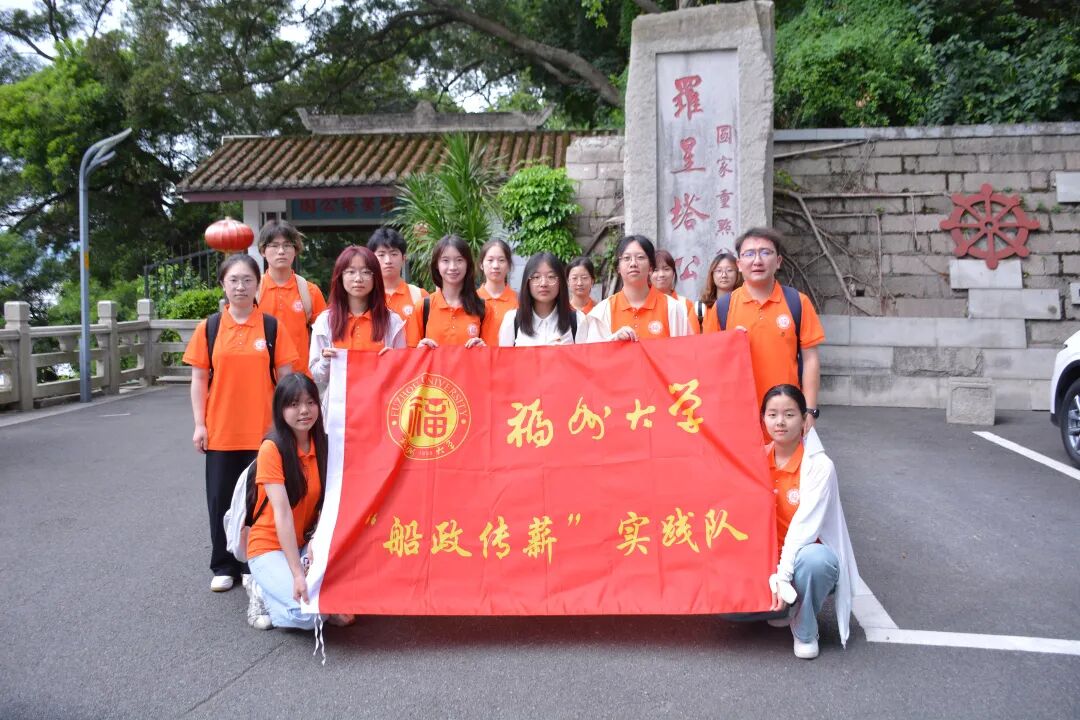 7月10日上午,实践队前往罗星塔公园。屹立在闽江口的罗星塔,历经百年风雨仍巍然矗立,塔身斑驳的印记诉说着福州作为海上丝绸之路重要港口的历史记忆。这座从南宋 “航行” 至今的 “中国塔”,不仅是闽江航标的 “老地标”,更是船政时代海洋文明觉醒的象征。实践队在罗星塔下眺望大海,海风拂过耳畔,仿佛能听见百年前船政舰船启航的汽笛,与眼前壮阔的海景交叠成一幅跨越时空的画面。