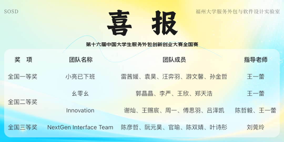 的雷茜媛、汪弈羽、游文馨、孙金哲、王欣、谢灿、王赐宸、周一、傅思羽、陈双婧、叶诗彤同学与计算机学院同学携手凭借卓越的创新能力和出色表现,在高手如云的巅峰对决中不负众望,荣获全国一等奖 1 项、全国二等奖 2 项、全国三等奖 1 项。