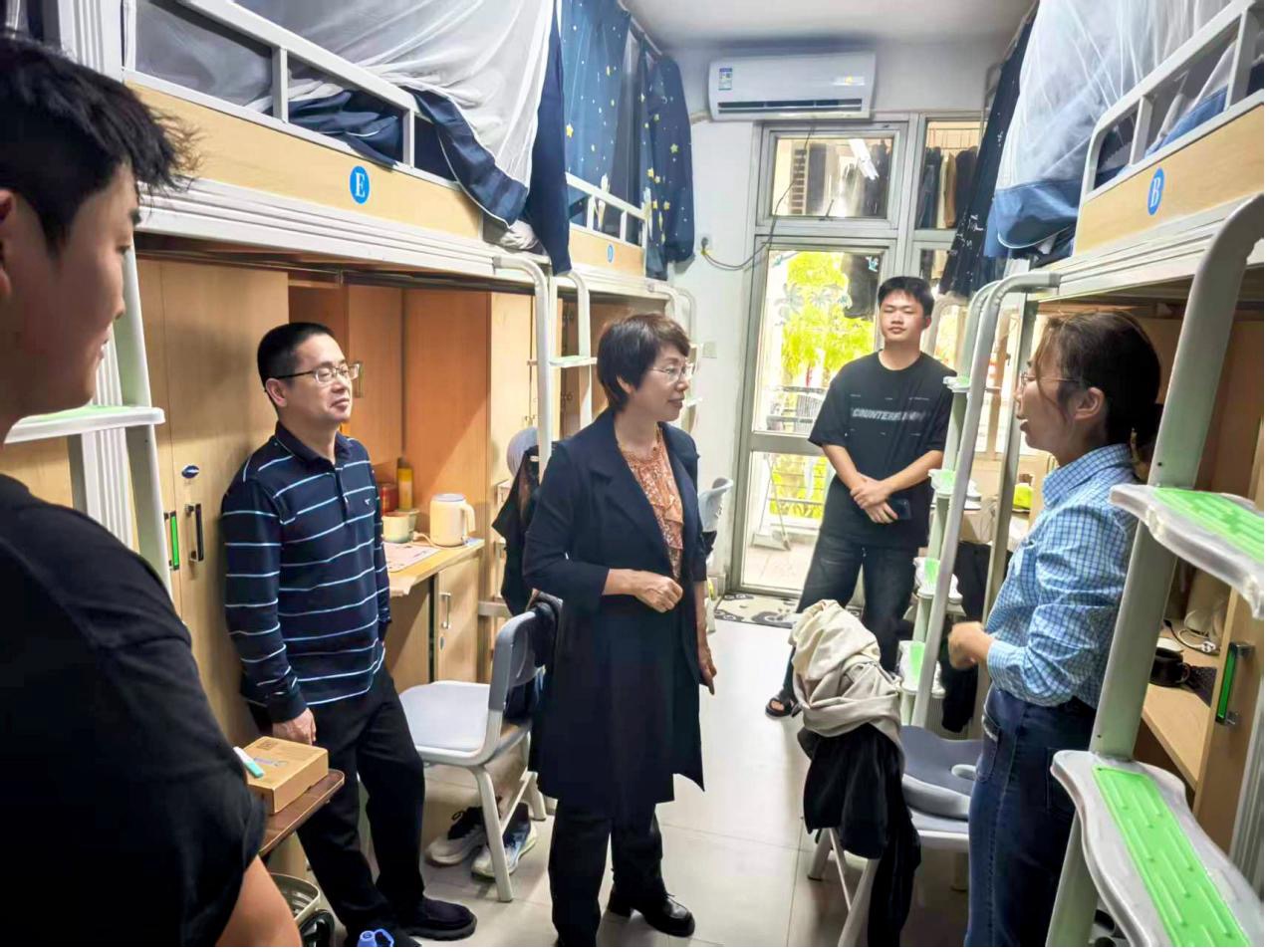 “最近学习压力大不大?”“生活上有没有什么困难?”……走进一间间宿舍,学院领导与同学们亲切交谈,详细询问大家近期的学习状态和生活适应情况。翁穗平书记叮嘱同学们要合理安排作息,注意劳逸结合,遇到问题及时向学院反映;王涛副书记关心同学们的学业规划与未来发展,鼓励大家珍惜大学时光,打牢专业基础,同时积极参与校园文化活动,全面提升综合素质。