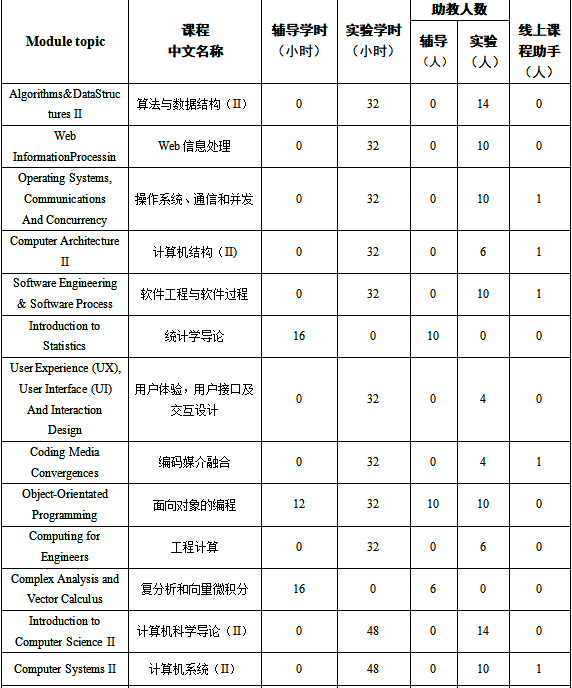 2020-2021学年第二学期具体选聘课程、拟聘人数及预计工作量详见下表: