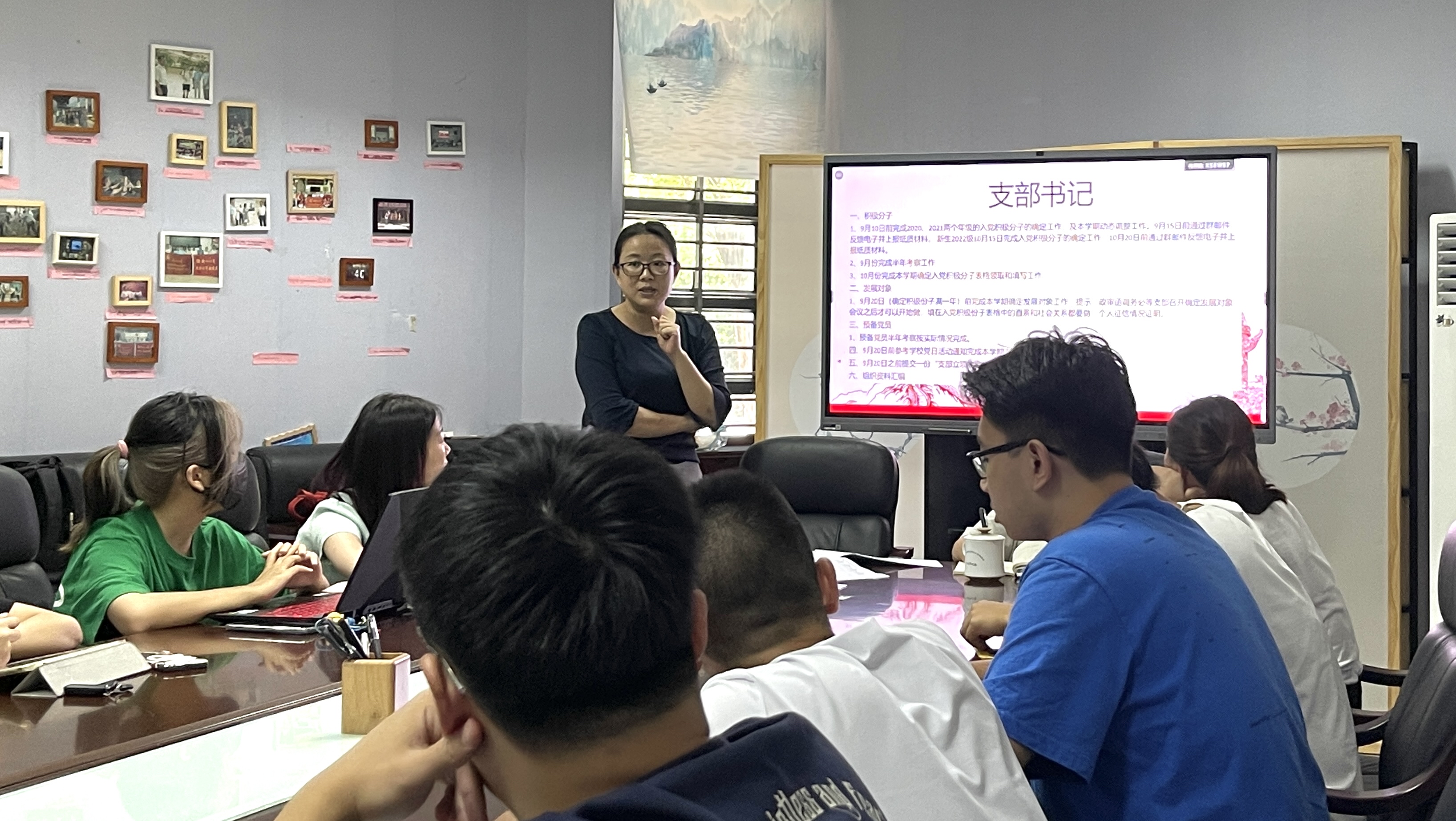 的实际情况以及校党委的工作要求,对参会人员提出了四点要求:一、落实学院例行党务工作,按照时间节点保质保量完成;二、打造党建特色品牌活动;三、对学院党建材料进行整理归档;四、加强“学习强国”的学习。