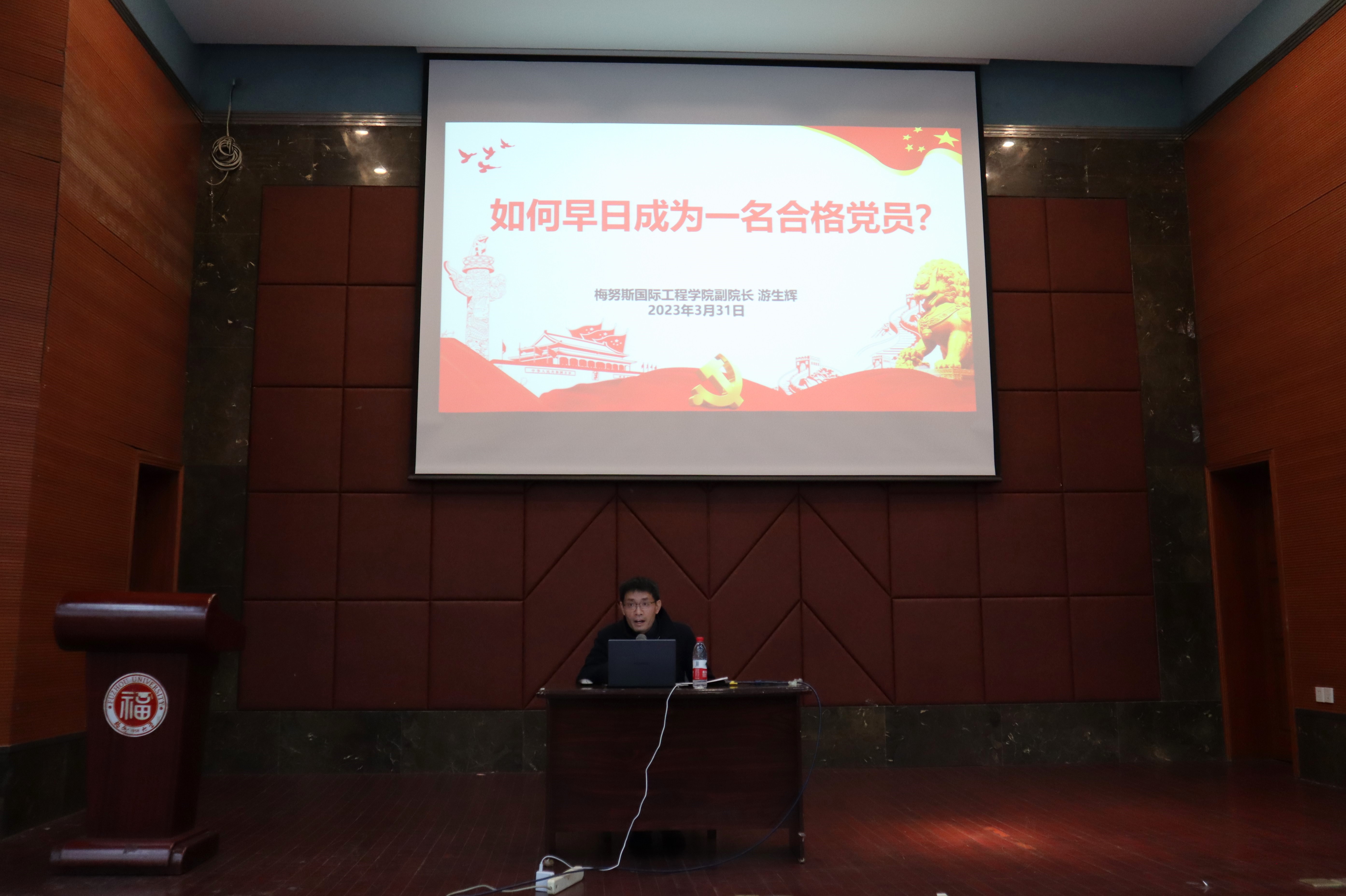游生辉副院长做动员讲话。本期培训的对象为联合党委本学年确定为入党积极分子的本科生、研究生共153名,他表示入党积极分子是党的新鲜血液、新生力量、生力军,希望各位学员珍惜此次培训机会,进一步加深对党的认识,端正入党动机,不断提高政治理论水平、共产主义思想觉悟,确立为共产主义事业奋斗终身的信念。