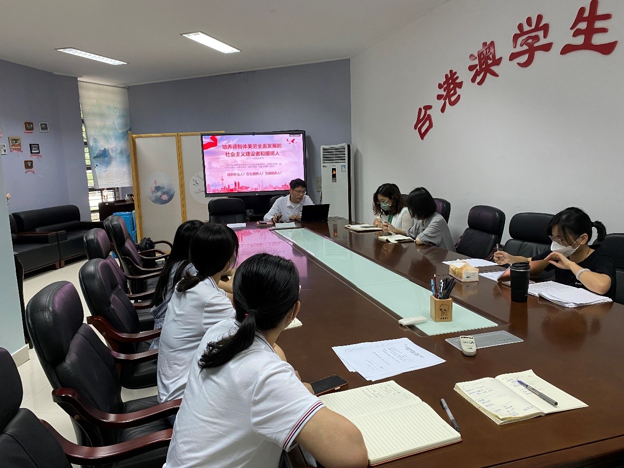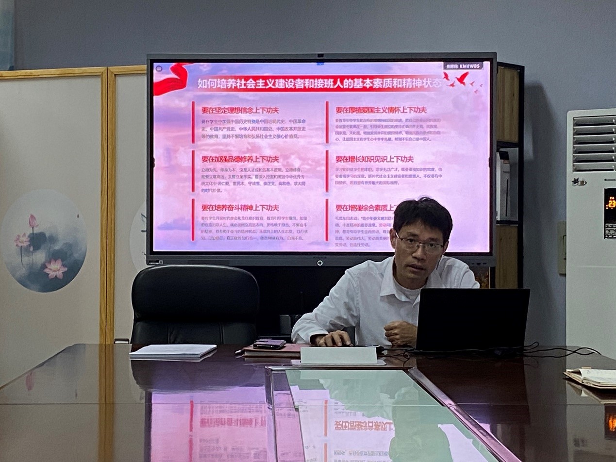 游生辉副书记首先分享了关于《习近平著作选读》的读书心得,他表示,全体教工党员要牢记为党为国培养德智体美劳全面发展的社会主义建设者和接班人这一核心任务,要在坚定理想信念上下功夫、在厚植爱国主义情怀上下功夫、在加强品德修养上下功夫、在增长知识见识上下功夫、在培养奋斗精神上下功夫、在增强综合素质上下功夫,善于发现每个学生的闪光点,坚持有教无类,坚持三全育人。