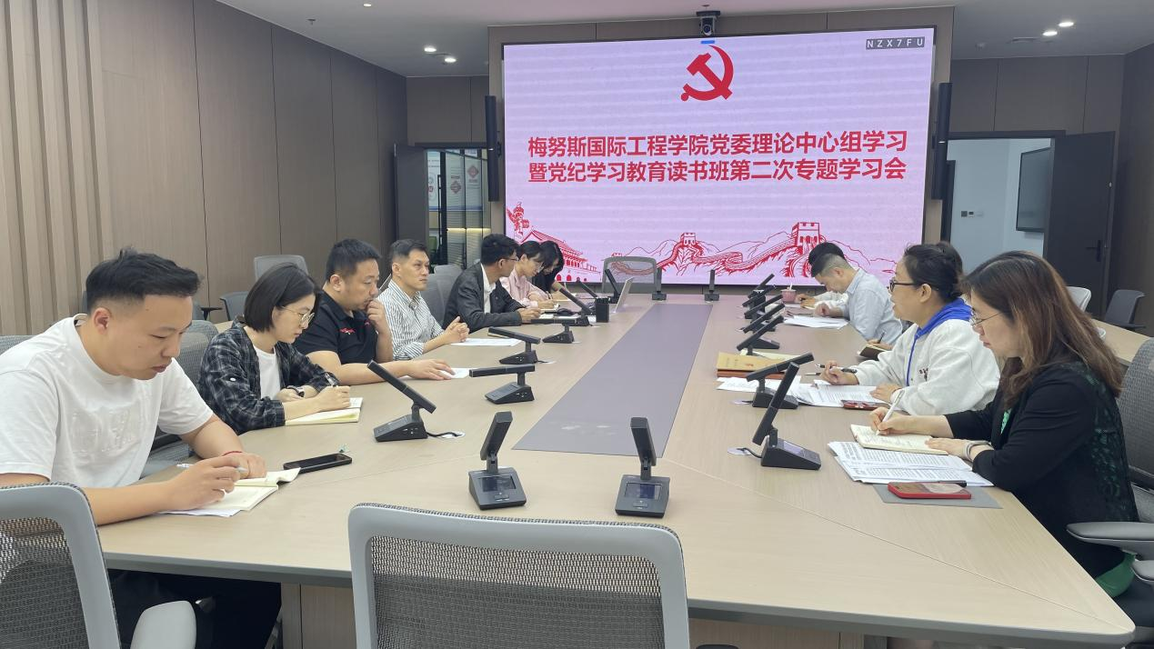 根据梅努斯学院党纪学习教育工作方案安排,5月14日上午学院举行党委理论中心组学习扩大会暨党纪学习教育读书班第二次专题学习会,围绕党的六项纪律之政治纪律开展专题学习交流研讨,学院党政领导班子、党委理论中心组成员,全体教工党员参加会议。