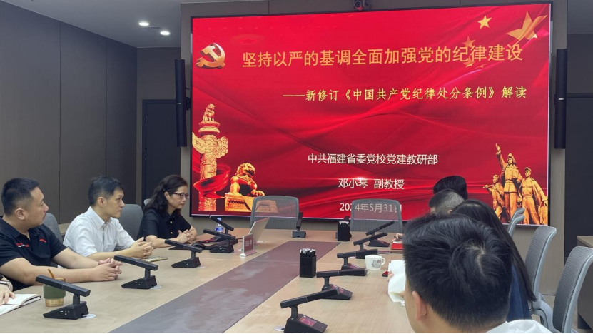 党纪学习教育专题报告在晋江楼北205举行,旨在强化党员干部的纪律意识,提升党员干部的政治素质,促进学院党风廉政建设,营造一个风清气正的政治环境,为学院的健康发展提供有力保障。邓小琴副教授以《坚持以严的基调全面加强党的纪律建设》为题,作党纪学习教育专题报告。报告会由学院党委副书记游生辉主持。