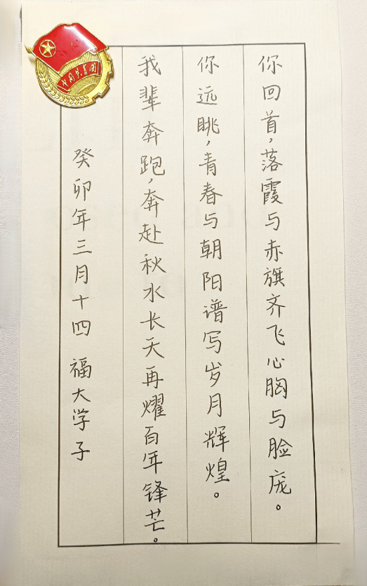 书生意气,激昂文字。幸逢盛世,我们与时代同向同行,用心用情讲述过往的峥嵘岁月,发扬不息的奋斗精神。梅努斯学子面向国际,但心仍铭记团的光辉。披荆斩棘,笃志前行,文字寂静,心潮澎湃,青年们将爱团情寄予文字,书诸笔下。