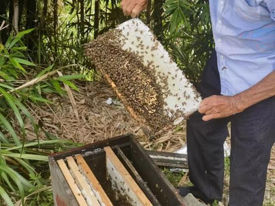第二天,实践队员们沿着泥泞的山路走进林区内部,经过实地探索过后,实践队员们深刻认识到古树群独有的自然魅力。古树群蕴含着丰富的文化价值和旅游资源。通过开发古树群旅游资源,可以促进当地经济发展、增加就业机会,并提高居民的生活质量。随后,实践队员跟随竹岭村的蜂农去参观蜜蜂的养殖,参观学习蜜蜂养殖、采蜜全过程。队员们深刻感受到竹岭村在响应习近平总书记的号召之下发展当地绿色产业文化。这不仅对环境有益,还能够促进经济增长、创造就业机会,并提高竹岭村人民的生活质量。