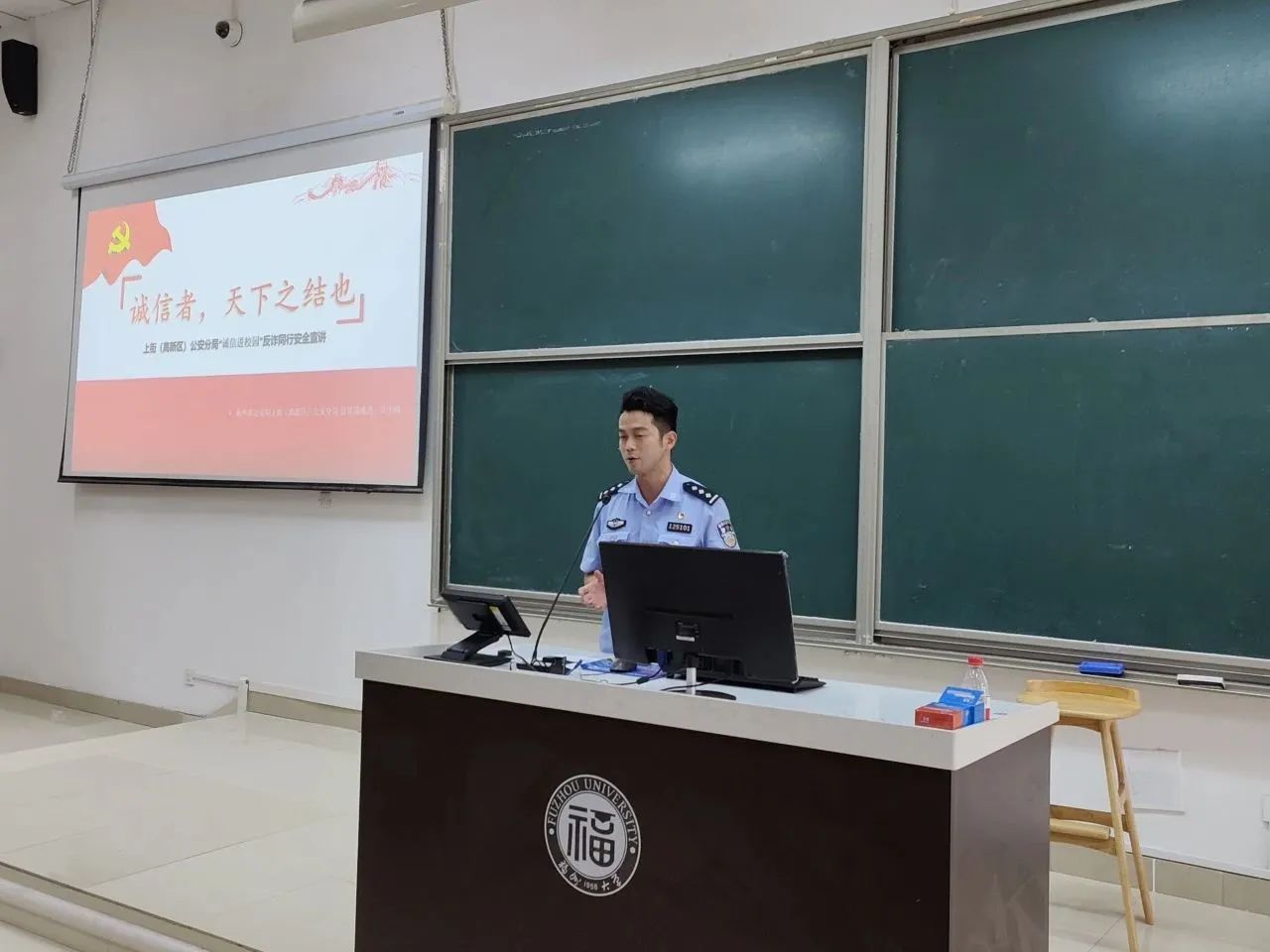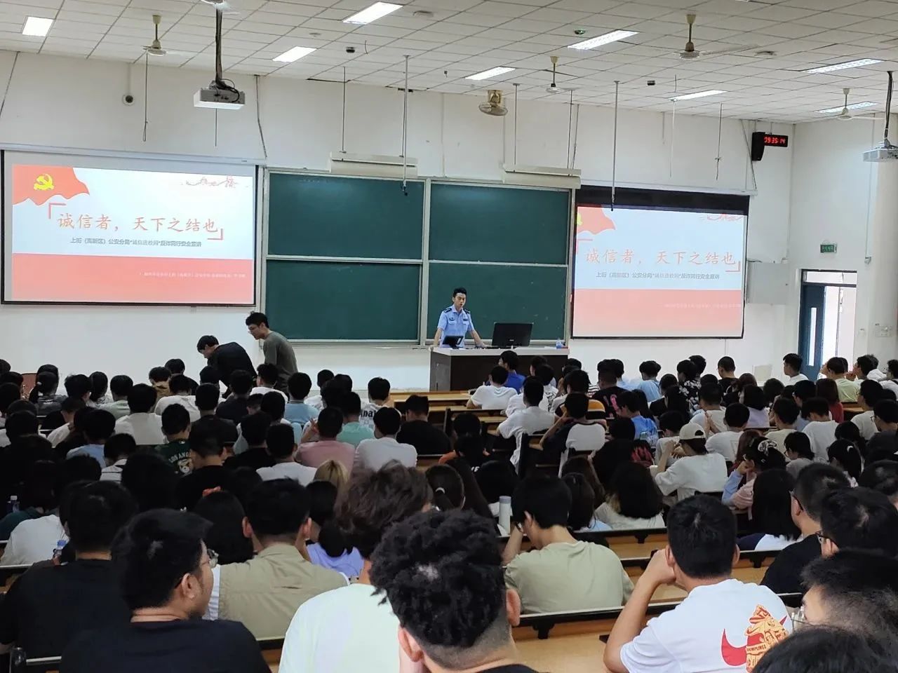 于8月30日上午开展了2023年新生校园安全稳定教育,邀请怡山派出所许杰峰警官担任主讲。