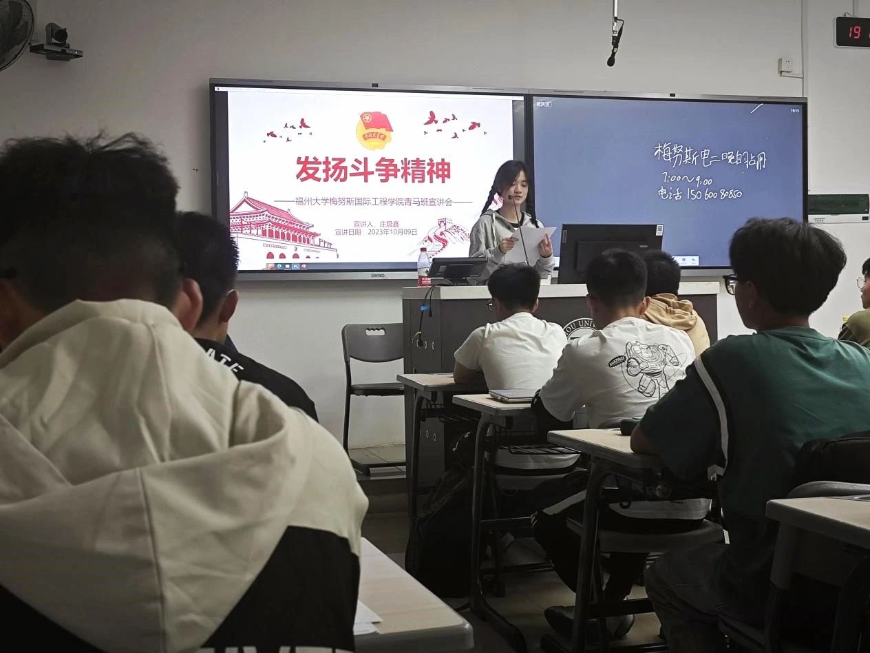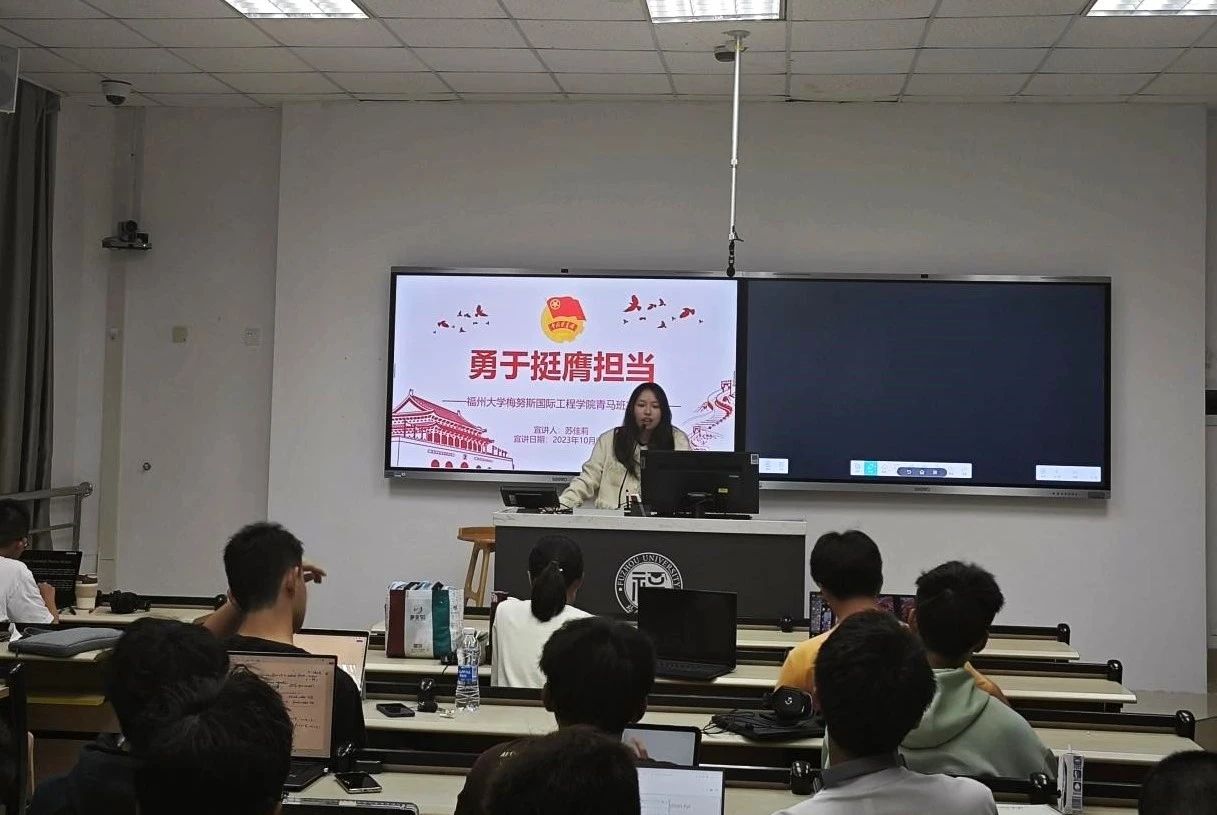 旗山校区顺利举办。本次宣讲会由学院青马班成员苏景瑄、苏佳莉及庄晨鑫三位同学组成宣讲团,围绕筑牢对党忠诚、坚定理想信念、发扬斗争精神、勇于挺膺担当四个主题,向学院大一新生们进行宣讲,引导同学们积极向党,激发爱党、敬党的热情,为初入大学的大一新生们讲述了何为青年人、何为青马班、何为中国共产党人。