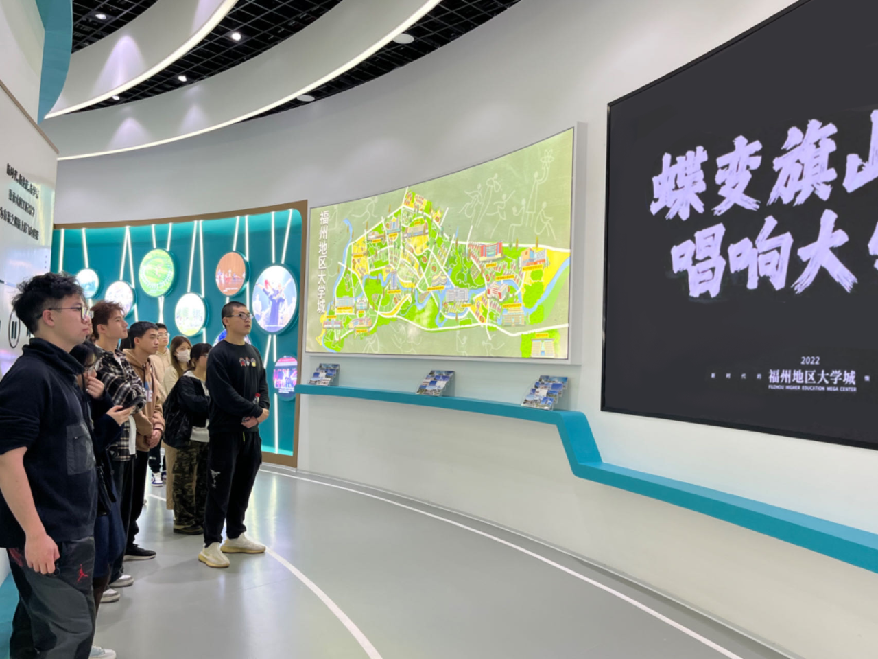 第一站,实践队来到“好年华 聚福州—福州地区大学城建设历程展”。展厅通过“亲自擘画”“亲切关怀”“殷殷嘱托”三个主题同心圆环墙展示大学城20年来的建设与成就,整体风格以“年轮”为设计理念,全面展示色色视频