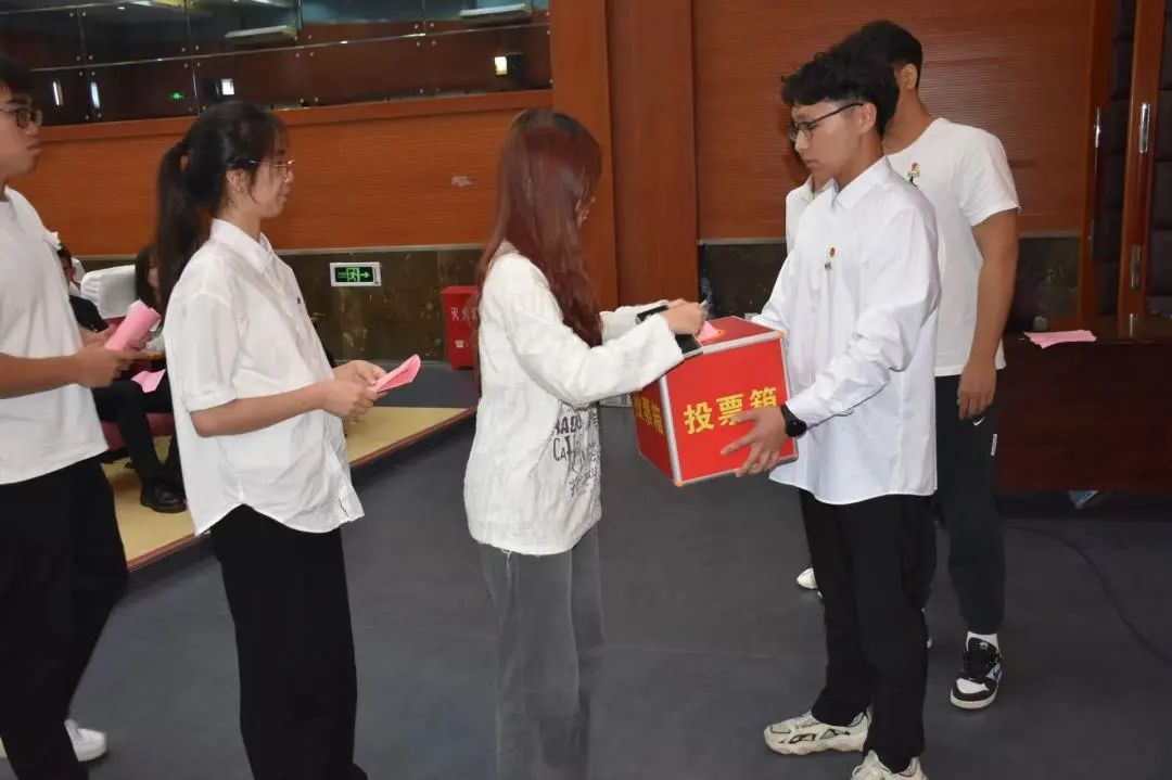 各位候选人演讲完毕后,大会进入投票选举环节。本次选举通过问卷以不记名差额投票的方式进行,各位学生代表按照大会评选流程参与选举投票。最后,团委书记刘歆一老师宣布:张聚鑫,林锦涛,顾宸三位同学当选色色视频