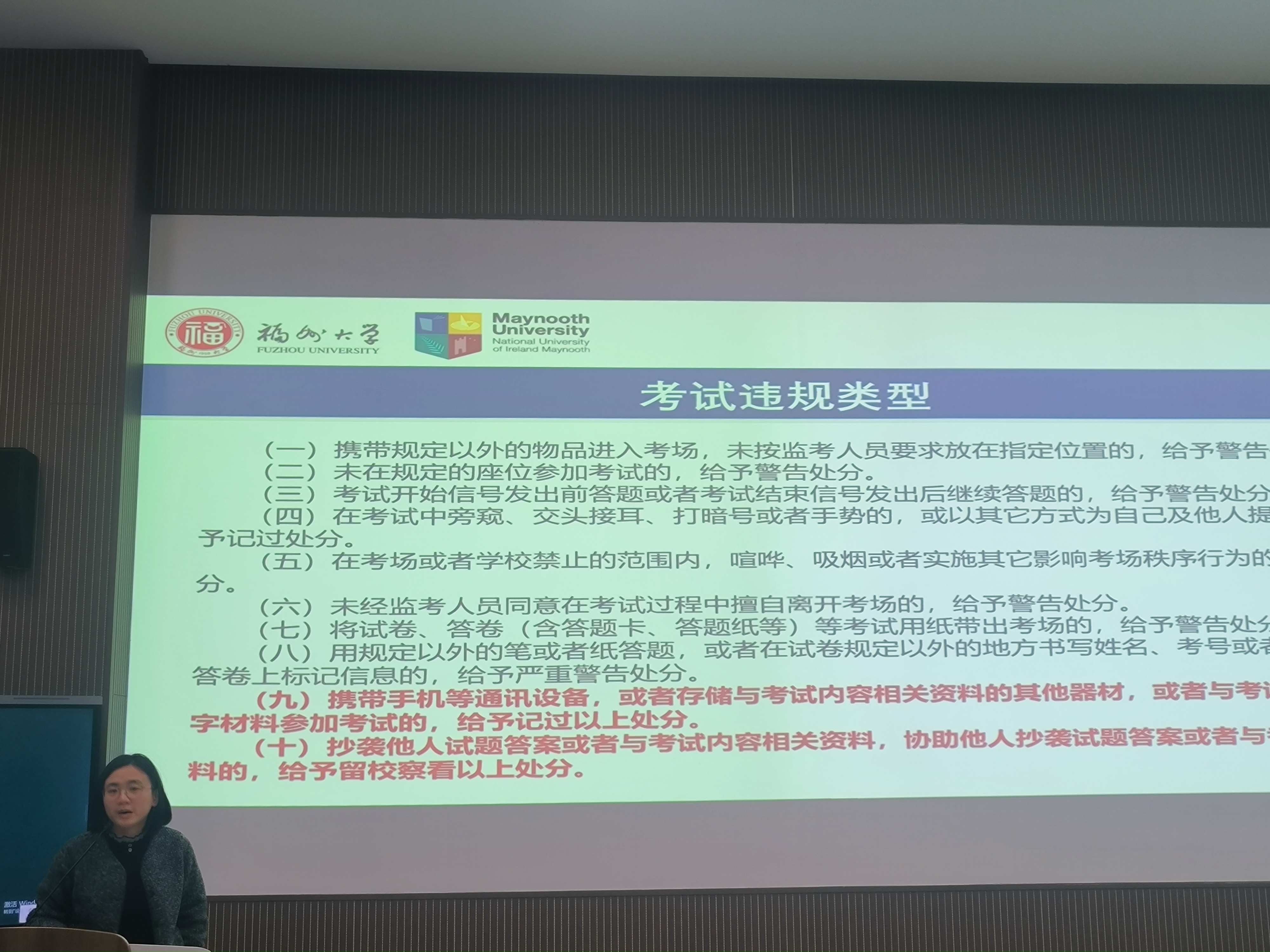 期末考试具体流程规定,告诫同学们务必重视考试纪律,并希望各班班委根据各班具体情况为同学们做好诚信考试的思想工作,呼吁全体同学以严谨的态度对待每场考试。随后同学们签订了诚信考试承诺书,承诺杜绝一切考试作弊行为,公平竞争,遵守考场纪律,坚决不报侥幸心理。