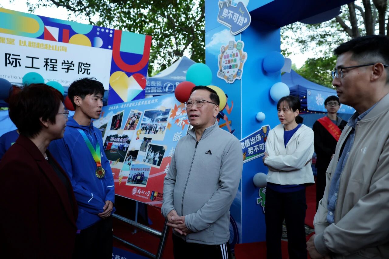 比赛结束后,校党委书记陈国龙、副书记王向阳及相关部门负责同志、学院党委书记翁穗平、副书记王涛等领导老师也来到赛场,与他亲切交谈,关切询问学习工作情况,一句 “常回校看看” 让这份来自母校的情谊愈发浓厚。