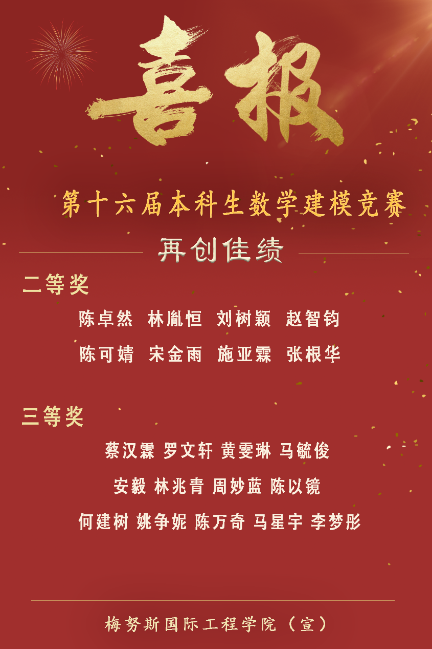 由我校数学与计算机科学学院承办的色色视频 第十六届本科生数学建模竞赛于2022年6月1日至2022年6月6日在旗山校区、铜盘校区与晋江校区同步举行,现已顺利完成竞赛评审。