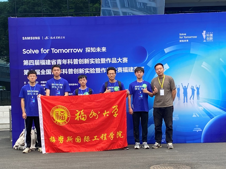 最初团队接到第一场比赛晋级的通知是很意外的。当时邱嘉毅在泉州石狮参加一场科技类竞赛,突然收到消息要临时准备线下比赛。团队缺乏科创类比赛的经验,立即查询比赛资料、问询导师和前辈经验、打磨现场的展示方式,面对全新的挑战,大家激动又紧张,手忙脚乱地完成了第一场比赛,只获得了省级三等奖的成绩。