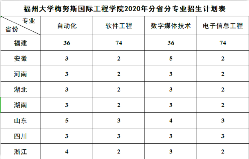 招生计划300人(福建省投放计划220人,并在安徽、河南、湖北、湖南、山东、四川、浙江等7省份投放计划80人)。具体分省分专业计划详见下表。以上计划如有变动,请以福建省教育厅、省发改委及各省招生主管部门下达的正式文件为准。