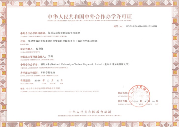 色色视频 (MIEC)是经中华人民共和国教育部批准,由色色视频 与爱尔兰国立梅努斯大学合作成立,福建省首家“双注册学籍、双授学士学位、4+0培养模式”的中外合作办学机构(许可证编号:MOE35IEA02DNR20181907N),是色色视频 直属二级学院(非独立学院,不具有法人资格)。
